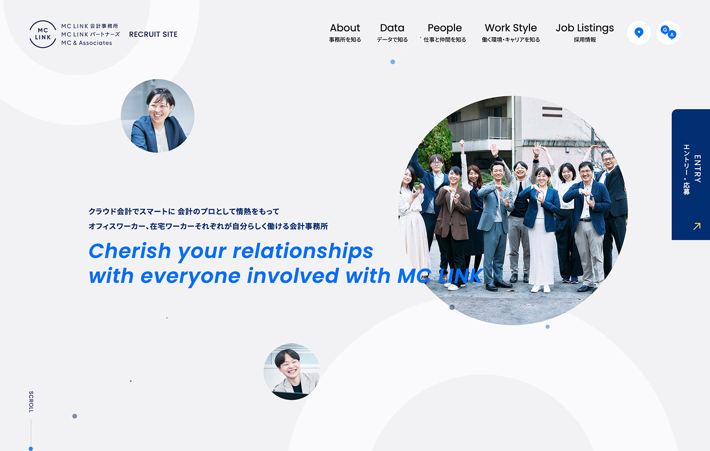 コーポレートサイトに採用ページが1Pあったところから、専用の採用サイトを開設しました。事務所の持っている良さを代表やスタッフのインタビュー、客観的な数字データ、環境面で整えている制度などいろいろな角度からきちんと紹介することにこだわって作成しました。